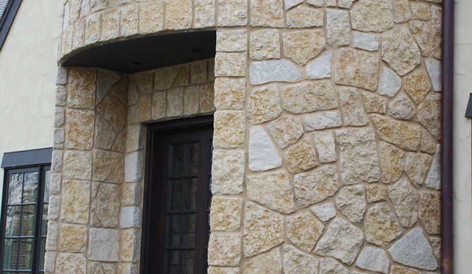 Prairie Webwall, or Webstone, is made up of irregular natural bedface stone installed in a mosaic pattern. Available in full veneer, and natural thin stone veneer. The color profiles include: gold, tan, and brown and some light blue/gray. View our product data sheet for more information and physical properties.